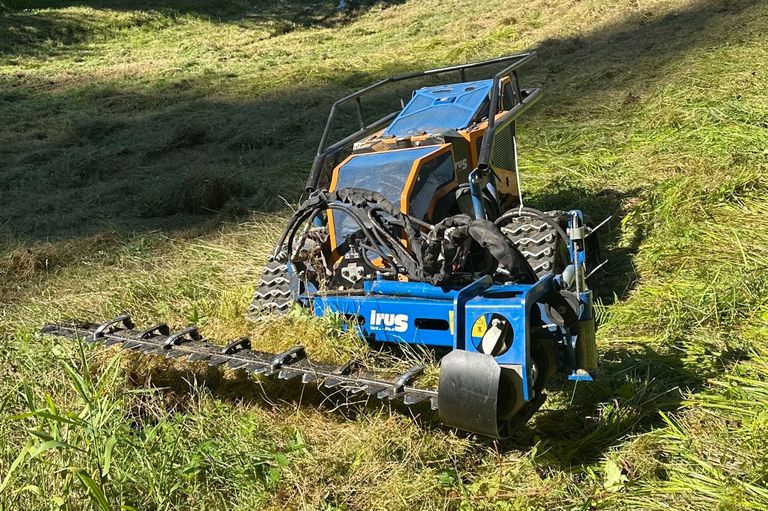 Für die Bearbeitung von Magerwiesen sowie die schonende Abmähung von Grasflächen, können wir unsere Mulchraupe wahlweise auch mit Messerbalken sowie einem Bandrechen einsetzen.